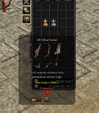 250 | Oyun içerisinde elde edilebilir. İstediği itemler boss ve metinlerde bulunur |